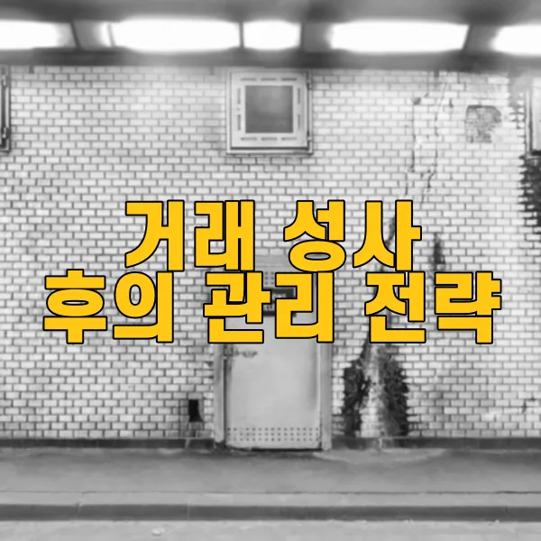 이렇듯 거래 성사 후의 관리 전략은 단순한 후속 조치에 그치지 않고, 고객과의 관계 강화 및 시장 이해도 향상, 법적 책임 관리 등 다양한 측면에서 접근해야 하는 복합적인 작업입니다. 성공적인 부동산 거래를 이끌기 위해서는 이러한 관리 전략을 체계적으로 실행하고 지속적으로 발전시켜 나가는 것이 중요합니다. 📈✨